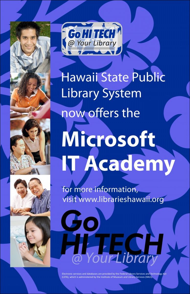 "The addition of these enhanced technology services, particularly the HSPLS Microsoft IT Academy, will equip our library patrons – from keiki to kupuna – with the technical skills needed to become more successful in the classroom and more employable in the 21st century workplace," said State Librarian Richard Burns.