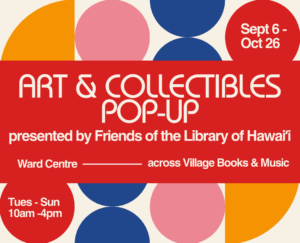 The new Village Books & Music store by Friends of the Library of Hawai‘i is conveniently located at the former Sedona store in the Ward Centre Mall at 1200 Ala Moana Blvd. Ample free parking is available in the adjacent structure. Thousands of books, CDs, DVDs, vinyl records, games, works of art, and much more are available for sale!