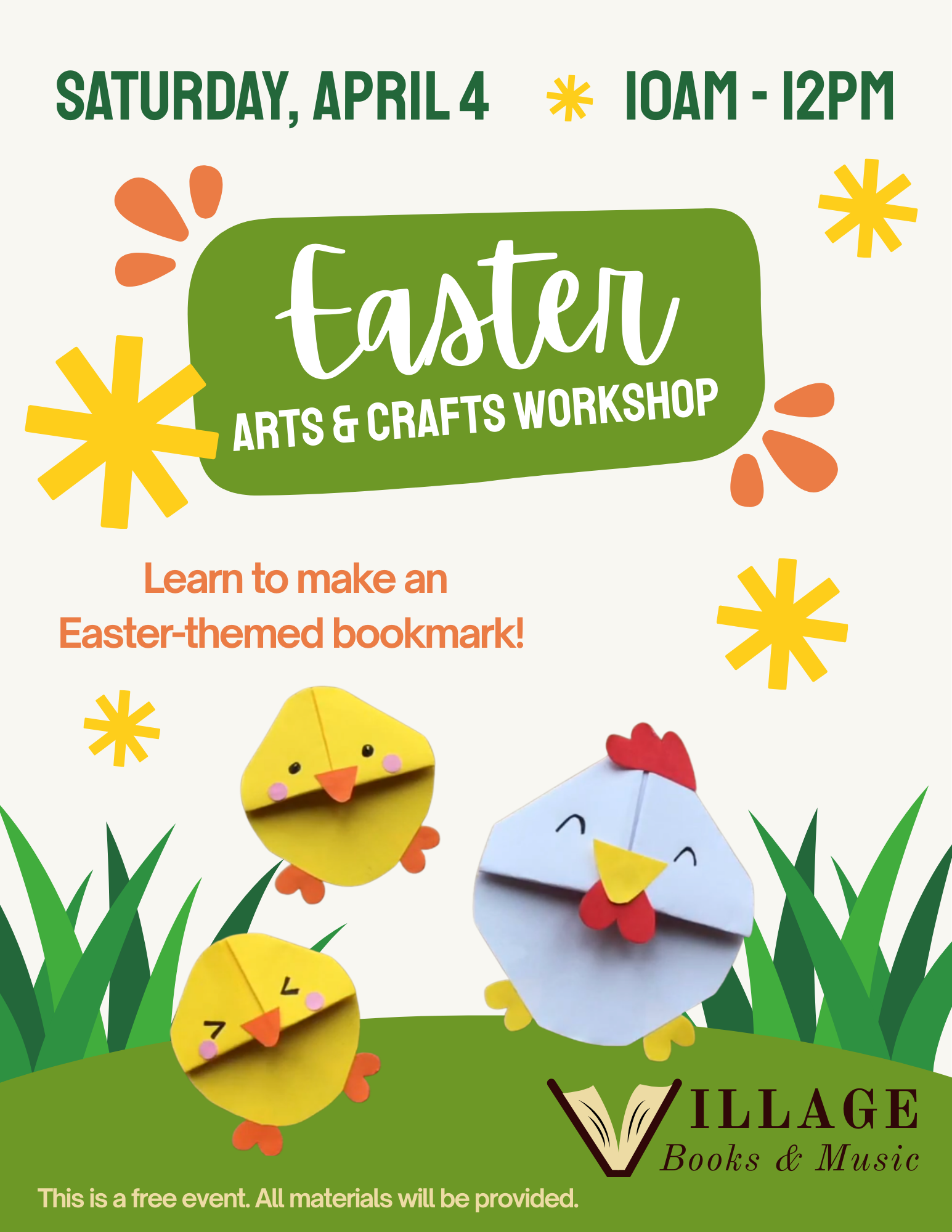 Join us for a free paper craft workshop on Saturday, April 4 and take home your own Easter-themed bookmark. All materials will be provided.