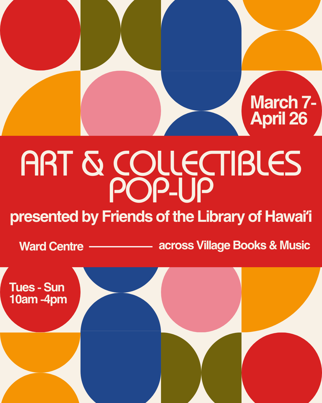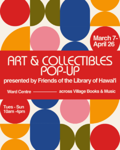 The new Village Books & Music store by Friends of the Library of Hawai‘i is conveniently located at the former Sedona store in the Ward Centre Mall at 1200 Ala Moana Blvd. Ample free parking is available in the adjacent structure. Thousands of books, CDs, DVDs, vinyl records, games, works of art, and much more are available for sale!